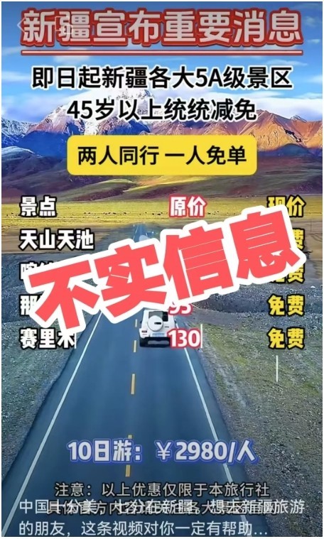 新疆旅行社协会倡议:广大旅行社及旅游行业从业人员,如发现此类发布不实信息的自媒体账号,请尽快与协会联系举报或通过相关官方渠道进行举报,共同维护新疆旅游市场秩序!!